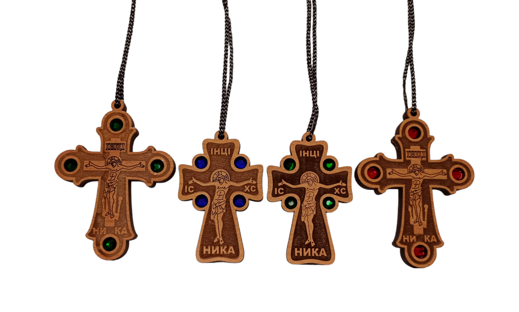 Подвеска Крест (дерево, камни) 6/8 см