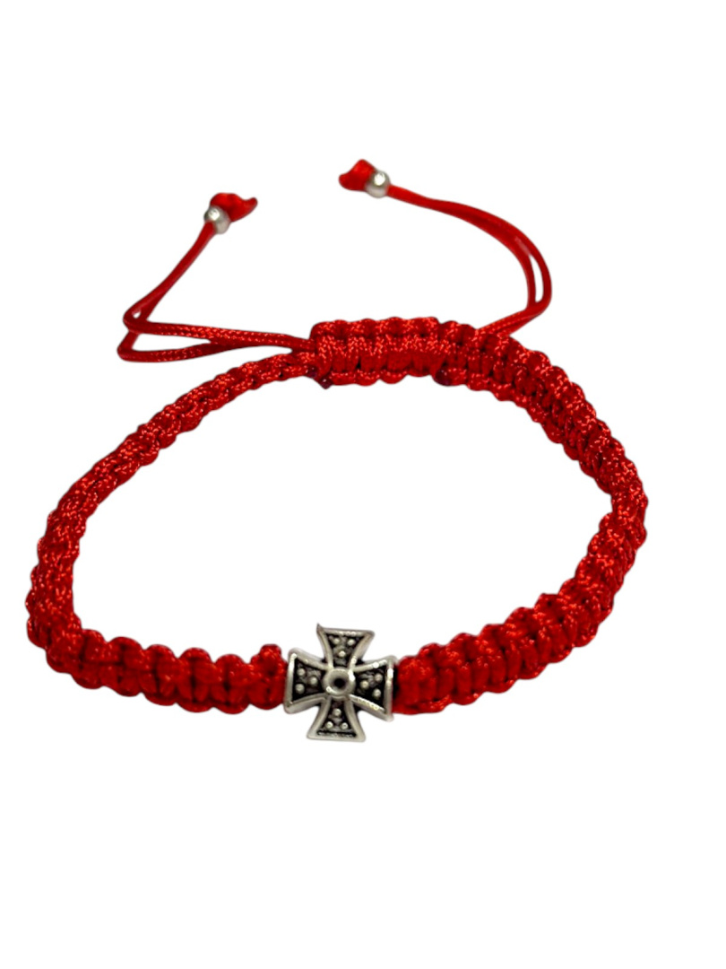 Браслет плетеный с крестиком (красный)