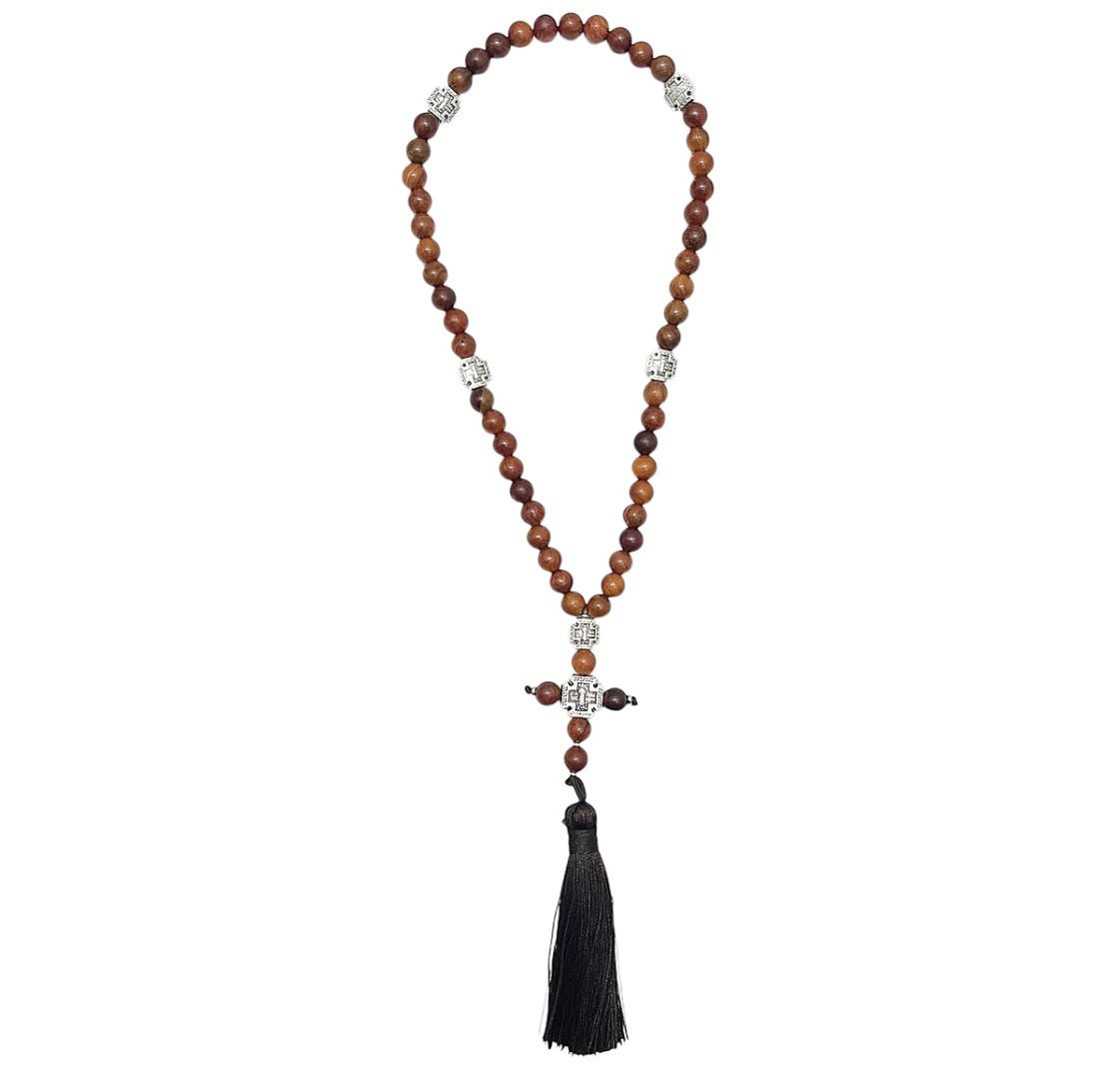 Четки дерево с металлическим крестом 50 зерен (серебро)