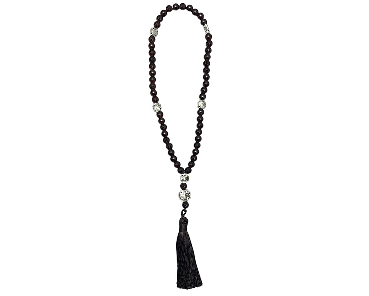 Чётки КОРИЧНЕВЫЕ с металическим крестом 50 зерен