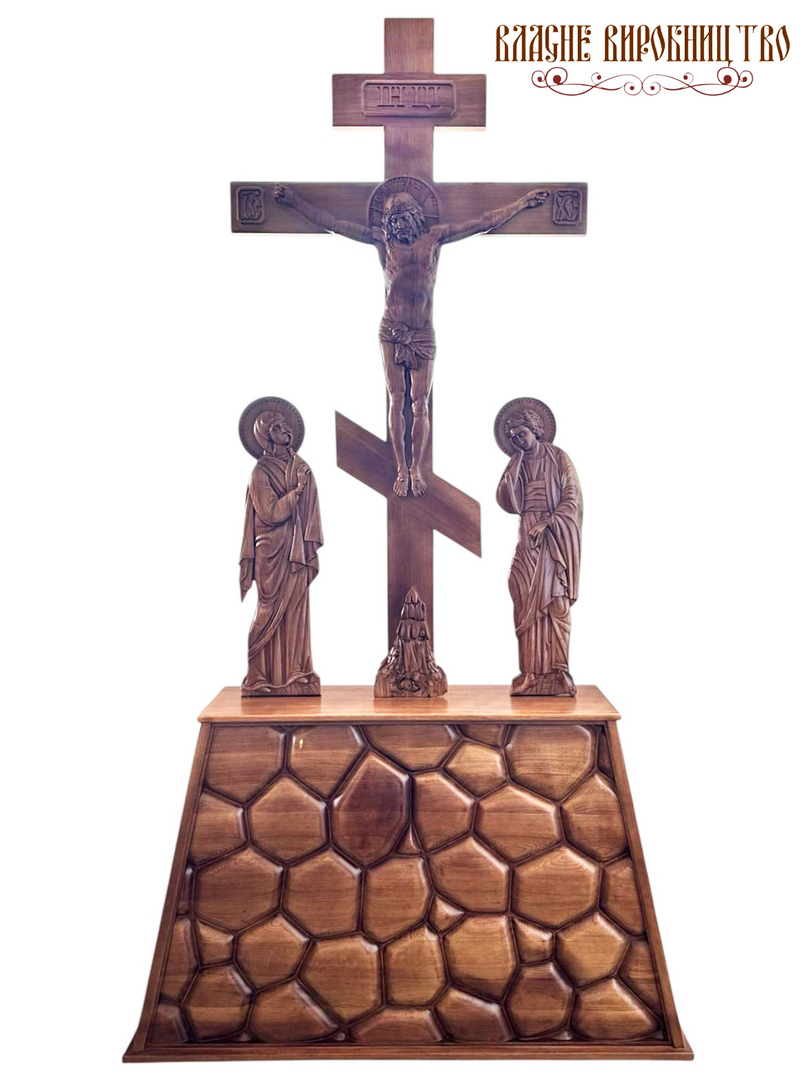 Голгофа напольная резная с предстоящими, дерево дуб 285/153/68 см