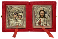 Бархатный складень, извлекаемый лик в ризах золото 15/18 Б-37