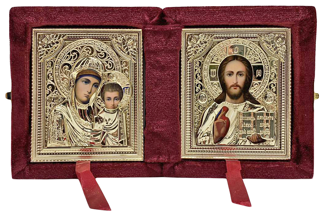 Бархатный складень, извлекаемый лик в ризах золото