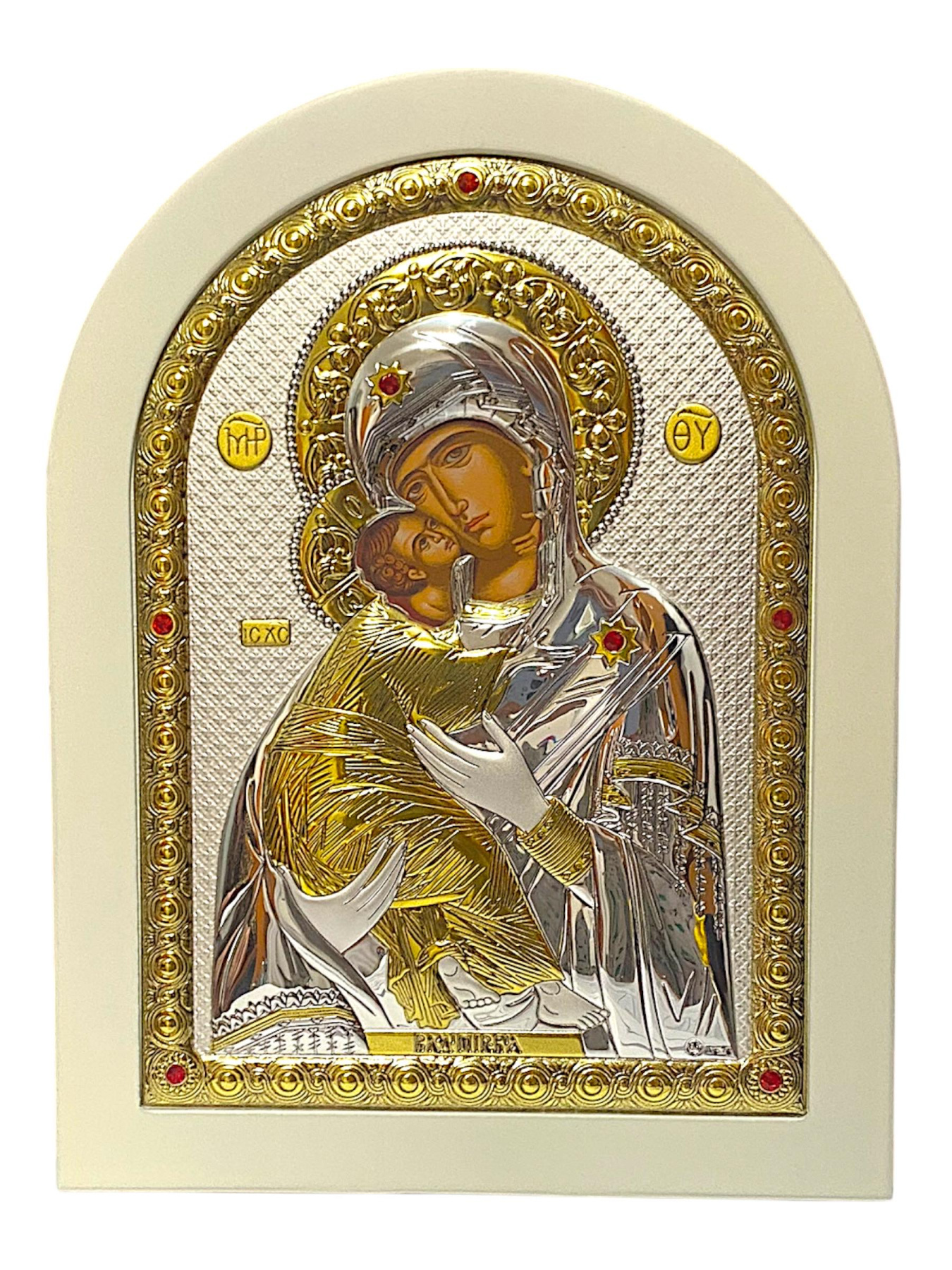 Серебряная икона Божией Матери «ВЛАДИМИРСКАЯ» 20/26см
