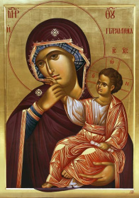 Икона на МДФ, шпон (ясень), шпонки, ковчег, полиграфия, декор.кайма, камни, лак.