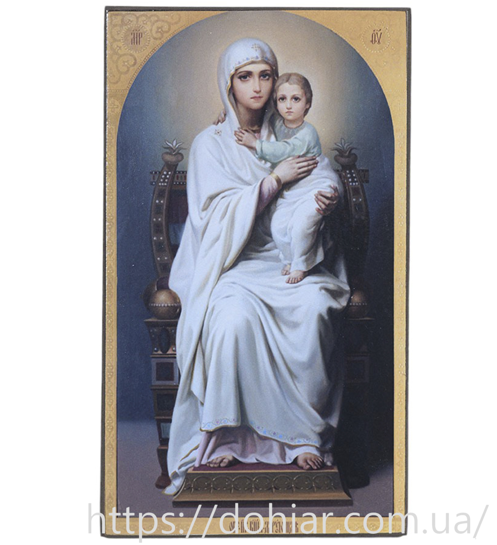 Ікона на МДФ, шпон (ясен), шпонки, ковчег, поліграфія, лак.