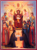 Икона на МДФ, шпон (ясень), шпонки, ковчег, полиграфия, лак.