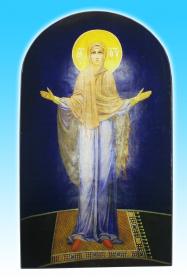 Икона на МДФ, шпон (ясень), шпонки, ковчег, полиграфия, декор.кайма, камни, лак.