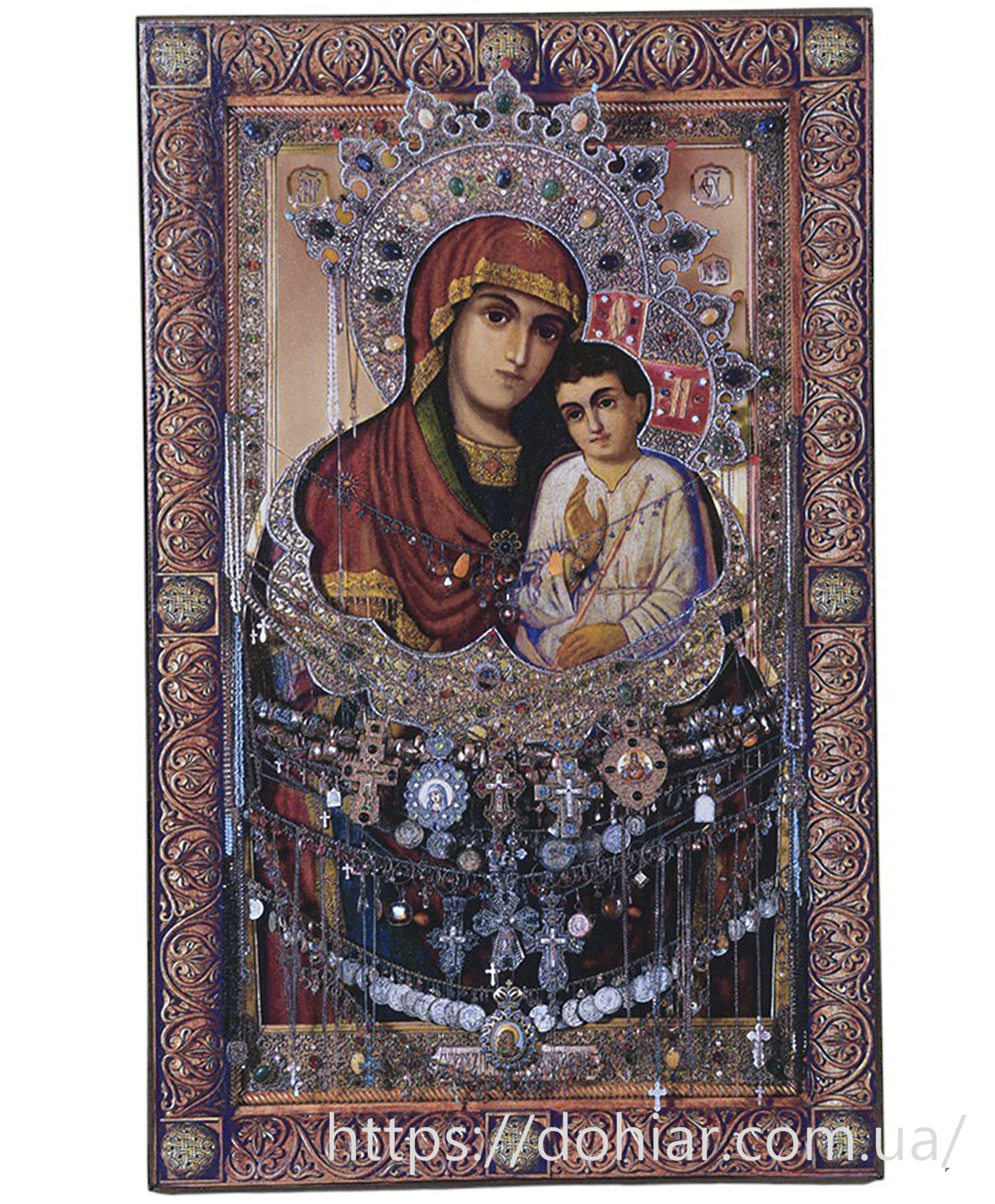 Икона на МДФ, шпон (ясень), шпонки, полиграфия, лак.