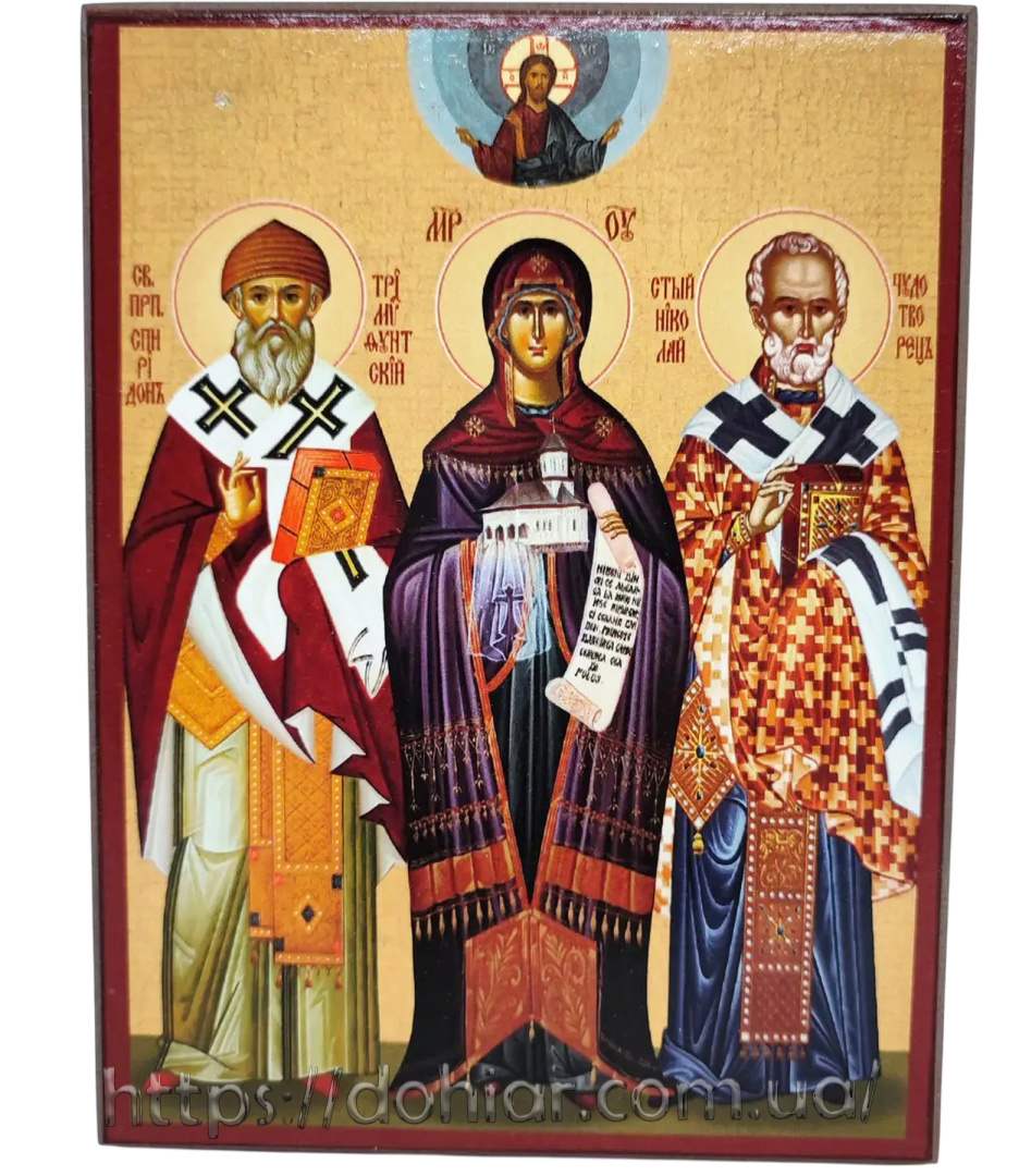 Икона Святой Николай, Божья Матерь и Спиридон 15/20 см