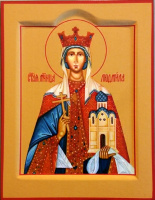 Икона на МДФ, шпон (ясень), шпонки, полиграфия, лак.