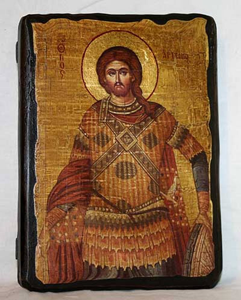 О всехвальный великомучениче Артемие, Господень воинственниче и всем нам крепкий поборниче! Скор буди предстательством твоим у Человеколюбца Христа, да даст правоверным людем, почитающим тя и на поклонение мощем твоим приходящим, милость и благих прошений скорое исполнение. Предстояй Престолу Божию в лице мученик, поминай всех нас, бедами, напастьми и скорбьми обстоимых, и в житии сем много страждущих: да твоею помощию и крепким поборством престанут приходящая на нас злая. Мы же, твоими злостраданиями назидаеми, силою благодати Христовы чрез тебе исполняеми, в терпении крестоношения жити начнем, во еже Господу покаянием благоугодити и неизреченная благая наследовати, яже уготована любящим Бога и прославляющим святое имя Его, Отца и Сына и Святаго Духа, ныне и присно, и во веки веков. Аминь.
