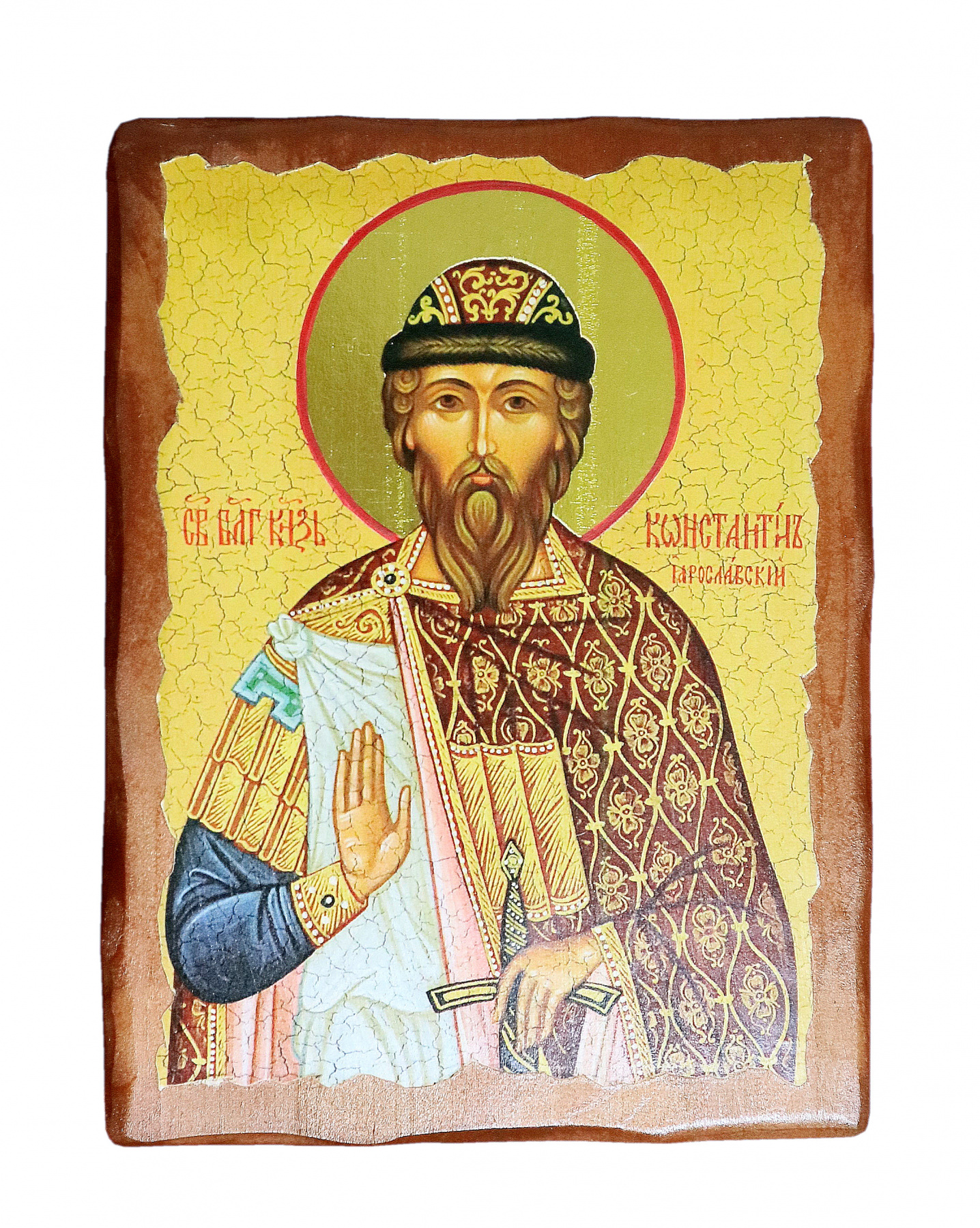 Икона ручной работы, искусственно сделанная под старину, материал: дерево, литография, краски, золочение, лаки. На оборотной стороне сургучная печать с символом Святой горы Афон.