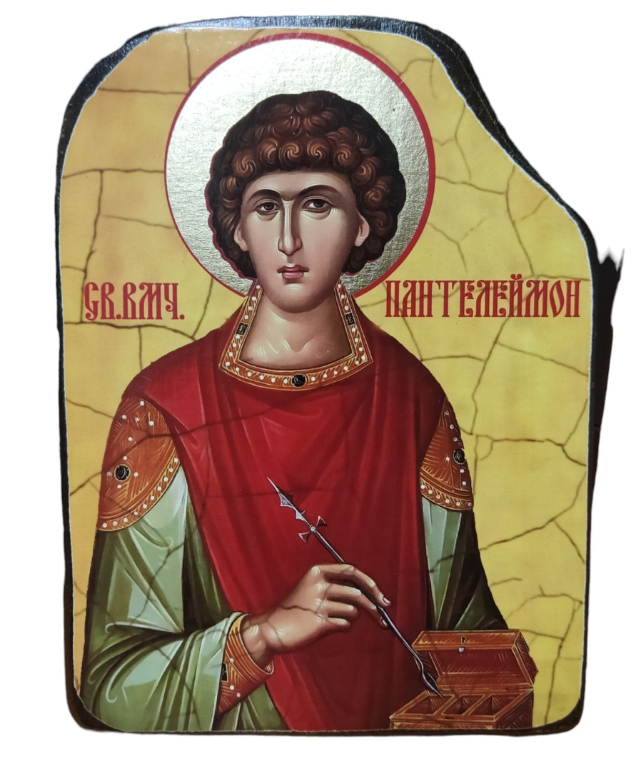 «К тебе, как безвозмездному врачу, утешителю скорбящих, обогатителю неимущих, прибегаем мы ныне, святый Пантелеймон. Любомудрию мирскому и искусству врачебному хорошо научившись, во Христа ты уверовал и, от Него дар исцелений, безмездно недугующих исцелял их. Богатство все свое нищим, убогим, сиротам и вдовам раздавая, в узах томимых ты посещал, святый страдалец Христов, и врачеванием, беседою и подаянием утешал их. За веру во Христа многообразные испытал мучения, ты во главу мечем был усечен, и пред кончиною твоею, явившись Христос наименовал тебя Пантелеймоном, то есть всемилостивым, потому что дал тебе благодать всегда миловать всех притекающих к тебе в любых обстоятельствах и скорбях. Услышь нас, с верою и любовью прибегающих к тебе, святый великомученик, ибо ты от самого Спаса Христа всемилостивым был наречен, и в жизни своей земной одному врачевание, другому милостыню, иному утешение нескудно подавал, никого не отпуская от себянеоблагодетельствованным. Так и ныне, не отринь и не оставь нас, святой Пантелеймон, но внемли и поспеши на помощь нам; от всякой скорби и болезни исцели и уврачуй, от бед и напастей освободи, и в сердца наши пролей утешение Божественное, чтобы бодры будучи телом и духом, прославили мы Спаса Христа во веки. Аминь».