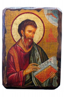 Икона ручной работы, искусственно сделанная под старину, материал: дерево, литография, краски, золочение, лаки. На оборотной стороне сургучная печать с символом Святой горы Афон.