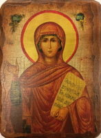 Икона ручной работы, искусственно сделанная под старину, материал: дерево, литография, краски, золочение, лаки.