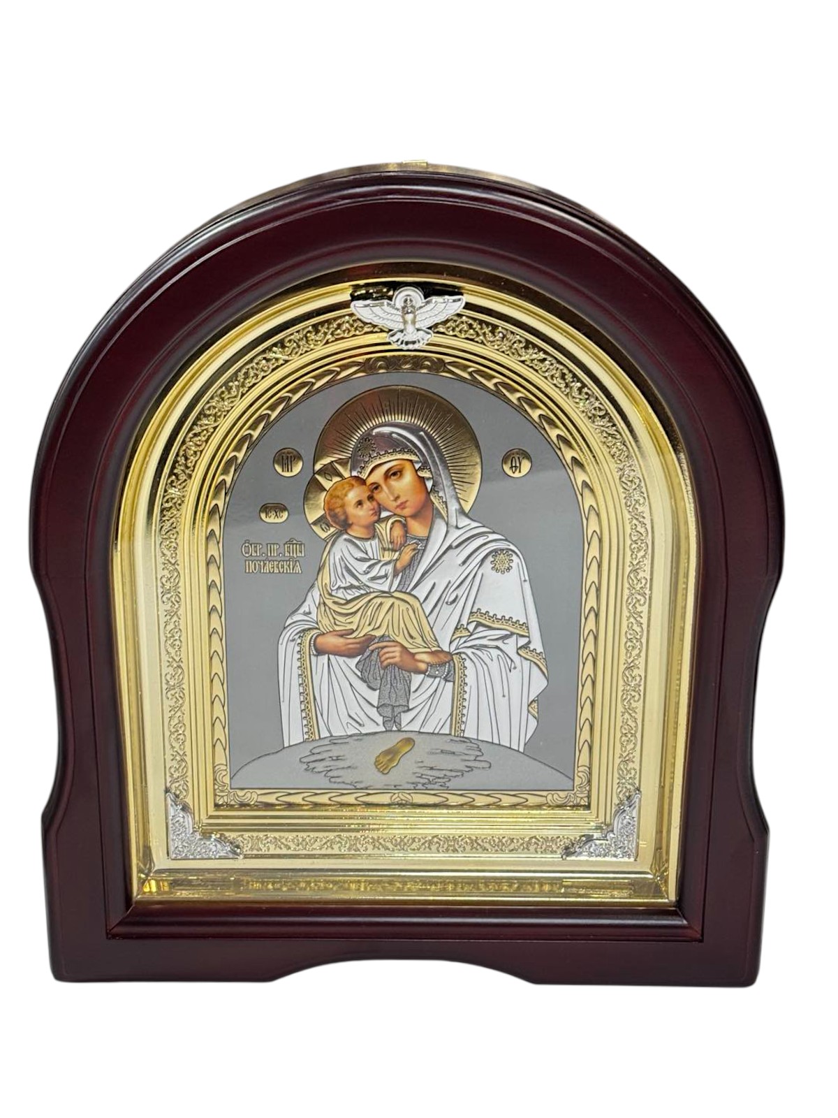 Почаевская икона Божией Матери темная рамка (арка) 25/28 см