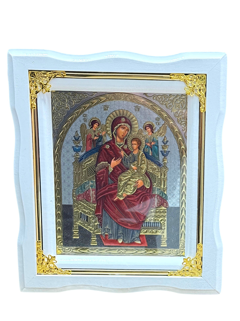Икона Пресвятой Богородицы "Всецарица" белая рамка, золотые углы ↕25см ↔22см