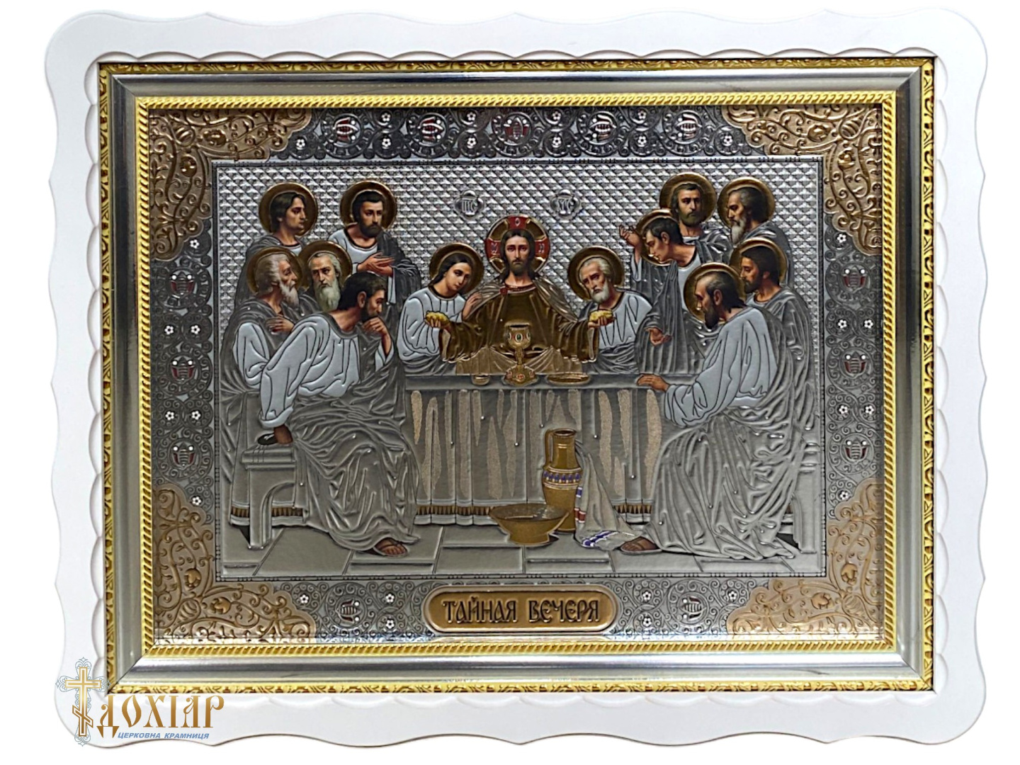 Тайная Вечеря (белая рамка, фигурная,конгрефф) 37/48см