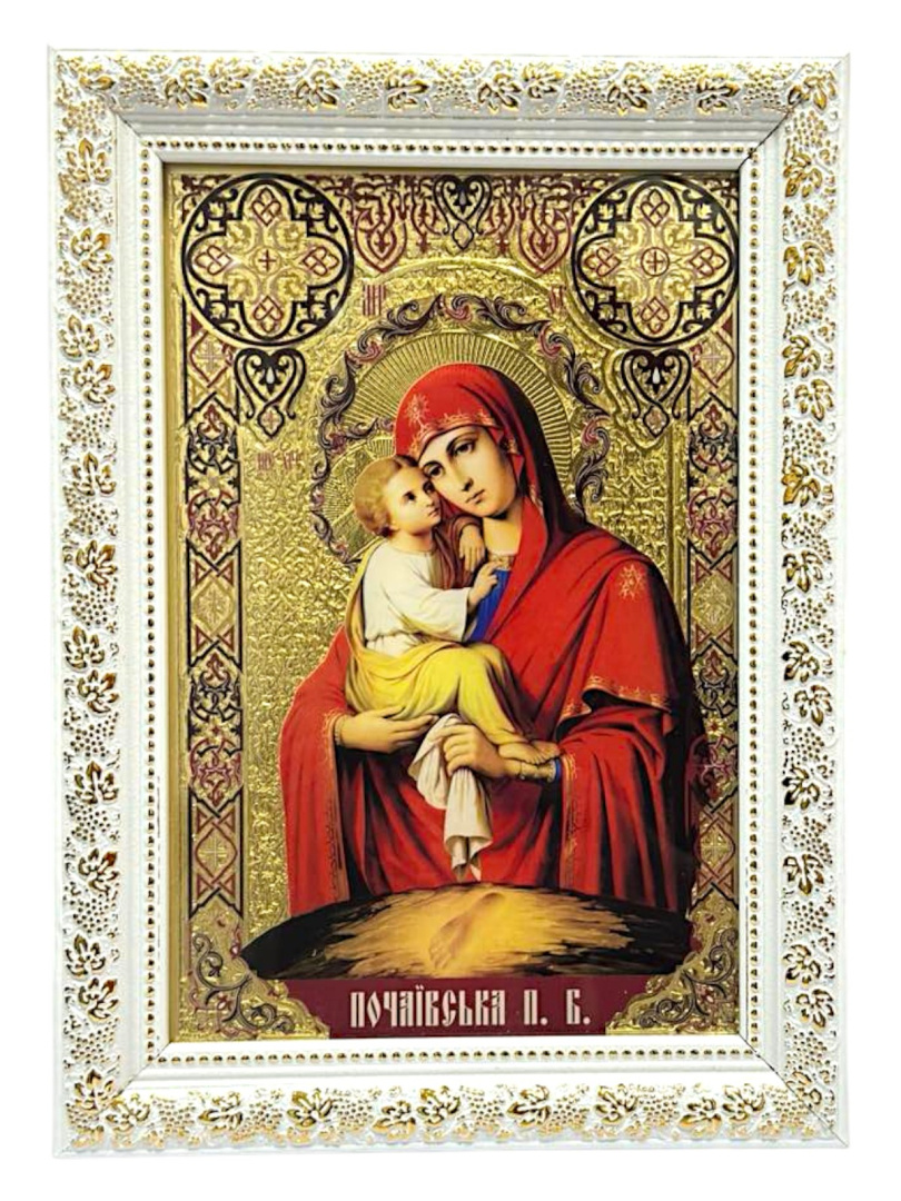 Икона ПОЧАЕВСКАЯ (печать на стекле, багет) 22/30см