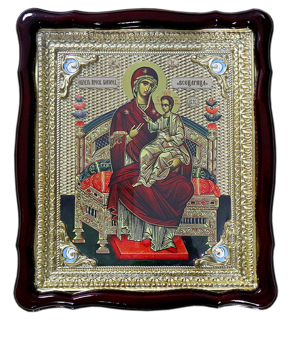 Храмовая икона Всецарица икона Божией Матери в ризе под стеклом