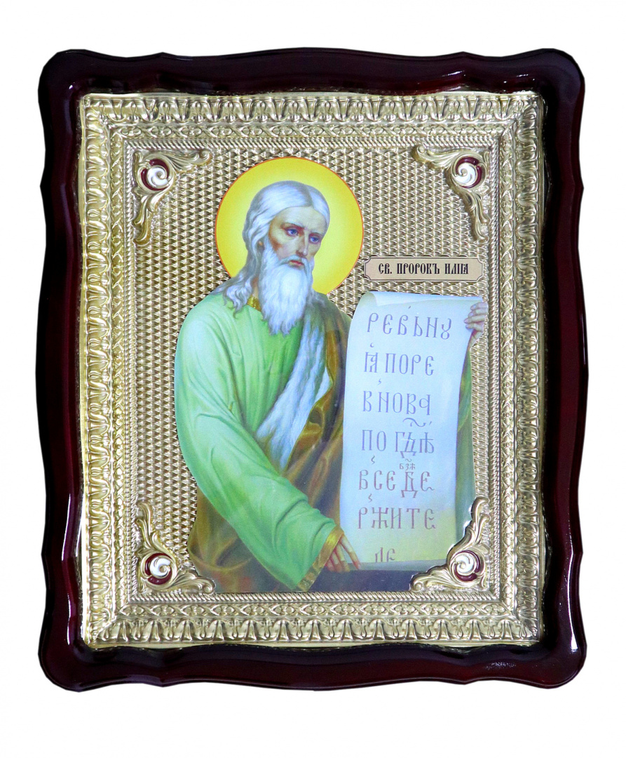 Храмовая икона Святой Пророк Илия в ризе под стеклом
