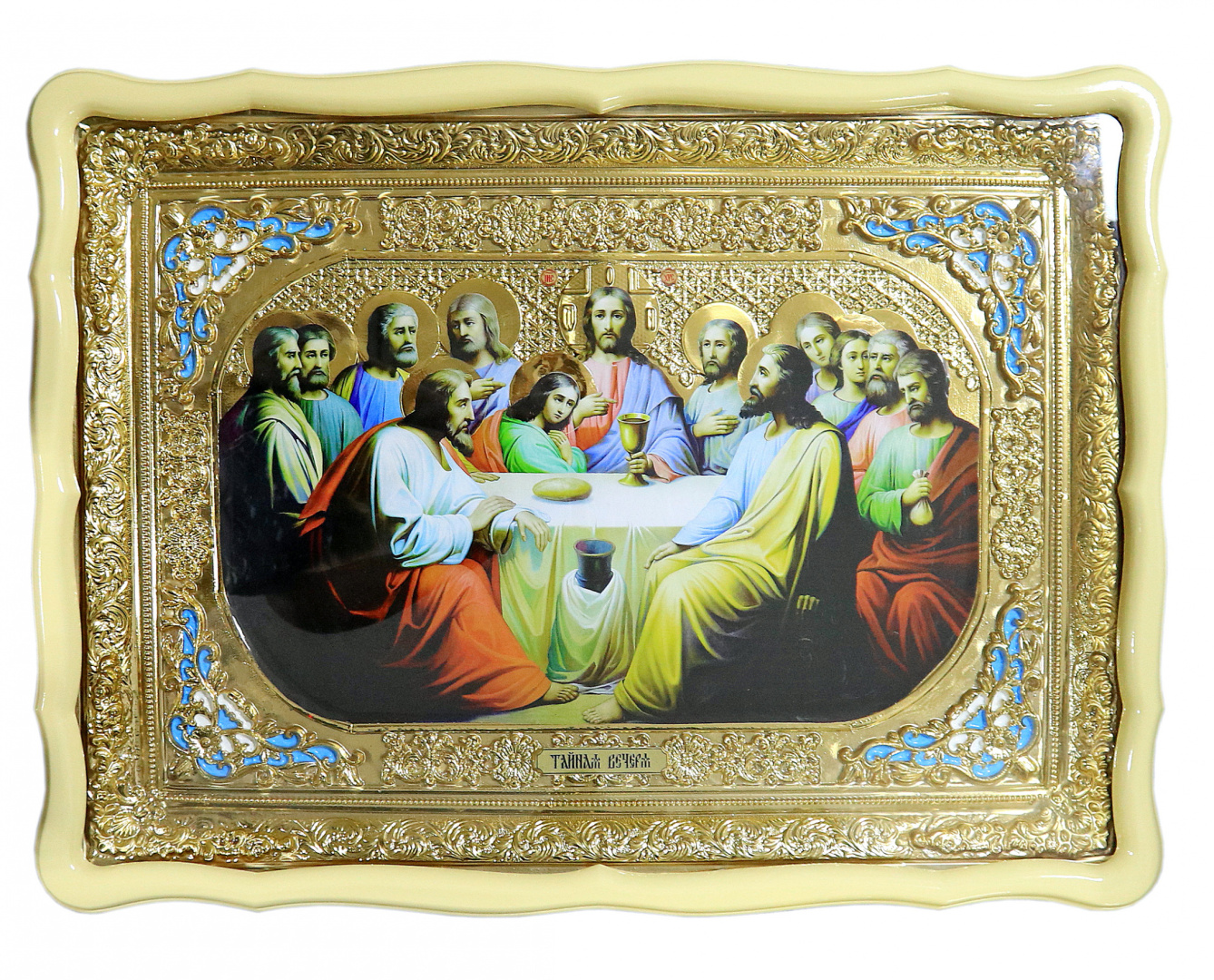 Тайная Вечеря в ризе с эмалью (молочная рамка) 60х80 см