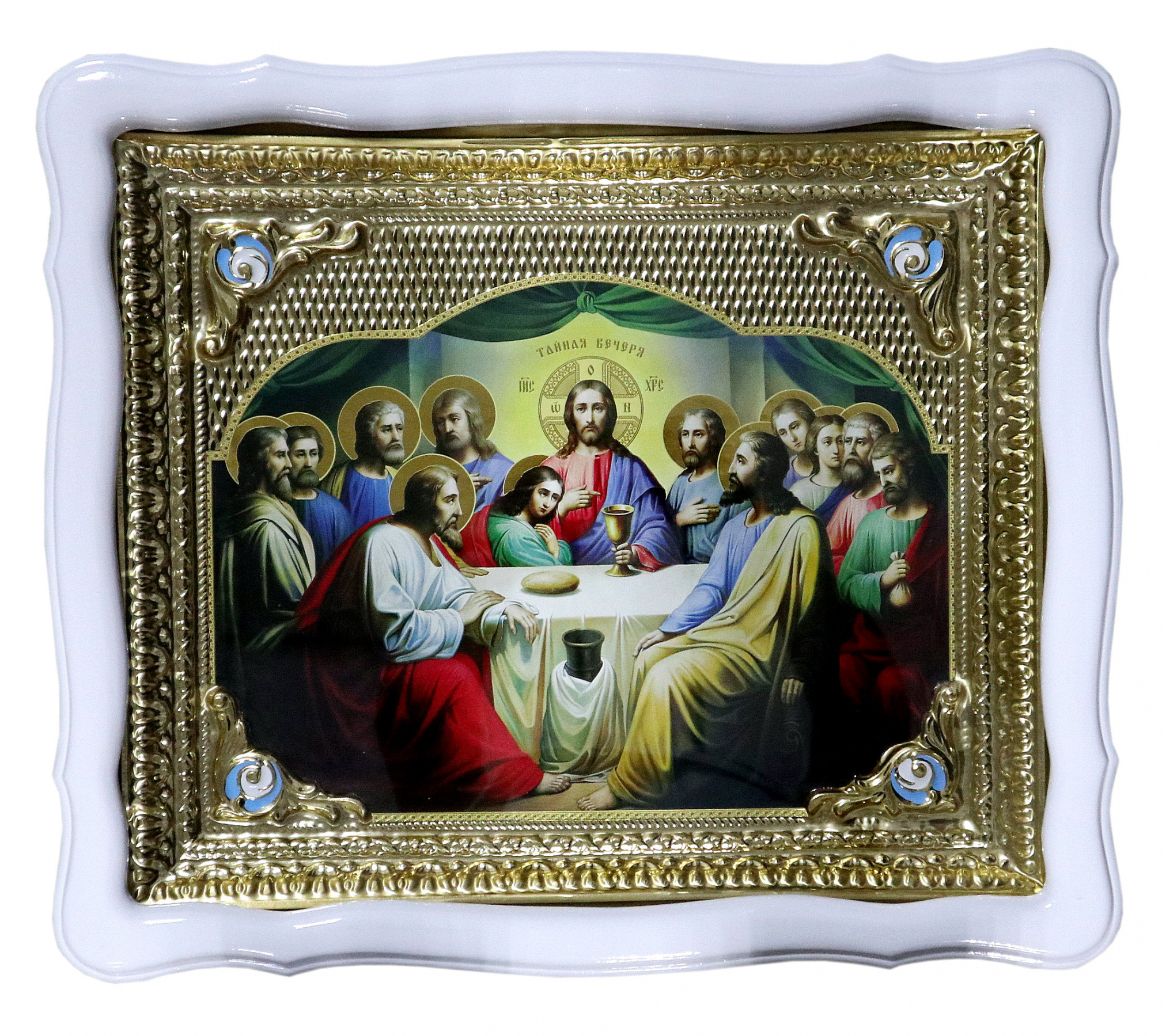 Тайная Вечеря в ризе с эмалью (белая рамка) 42/48см