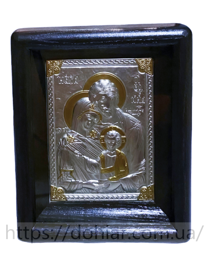 Оклад Иконы изготовлен из меди-гальваническим путем,с дальнейшим нанисением серебра и позолоты, поверхность которых покрыта специальным лаком,в результате чего,серебро не тускнеет, а позолота не блекнет.