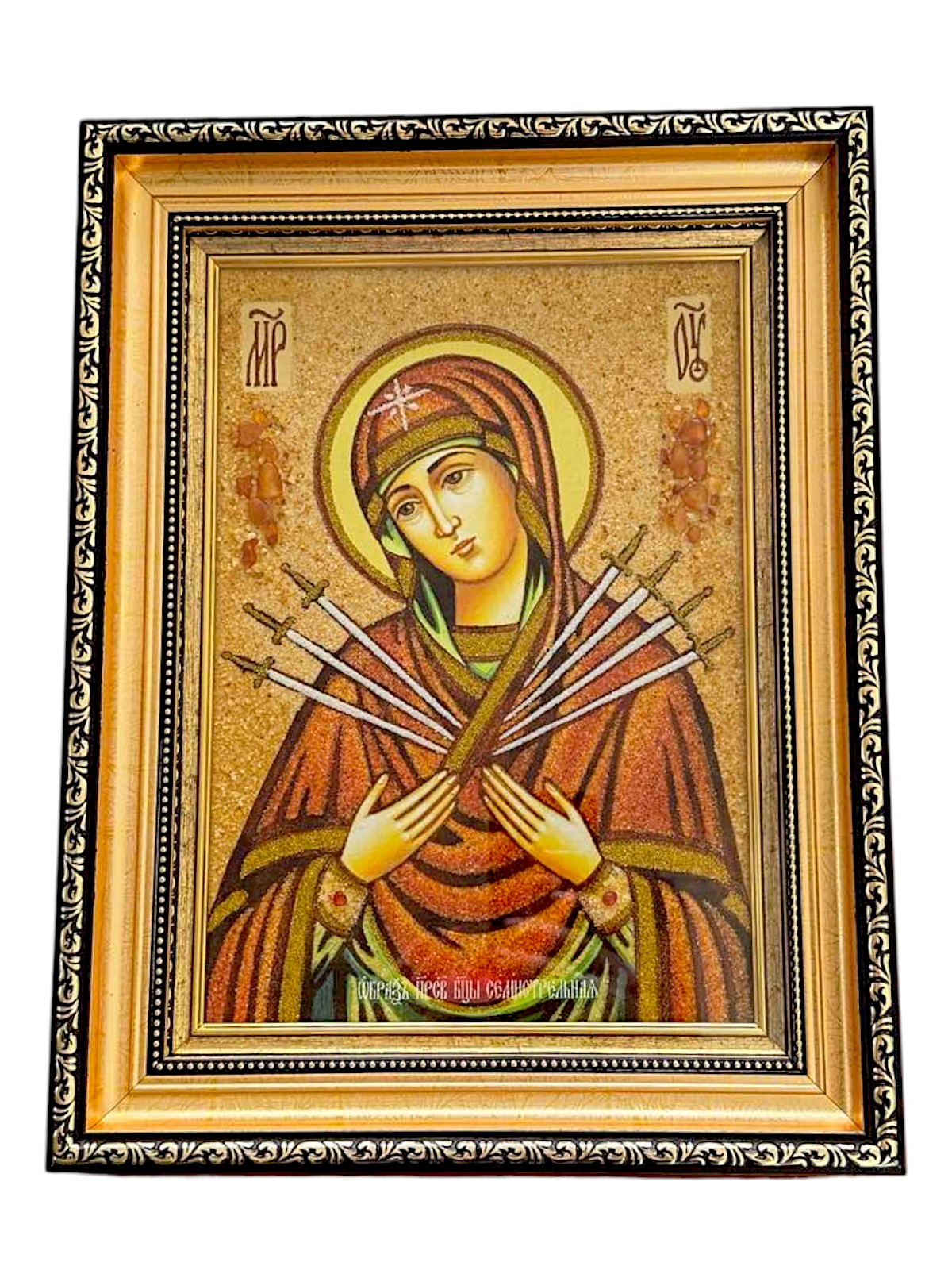 Семистрельная икона Божией Матери (янтарь) 25/30см