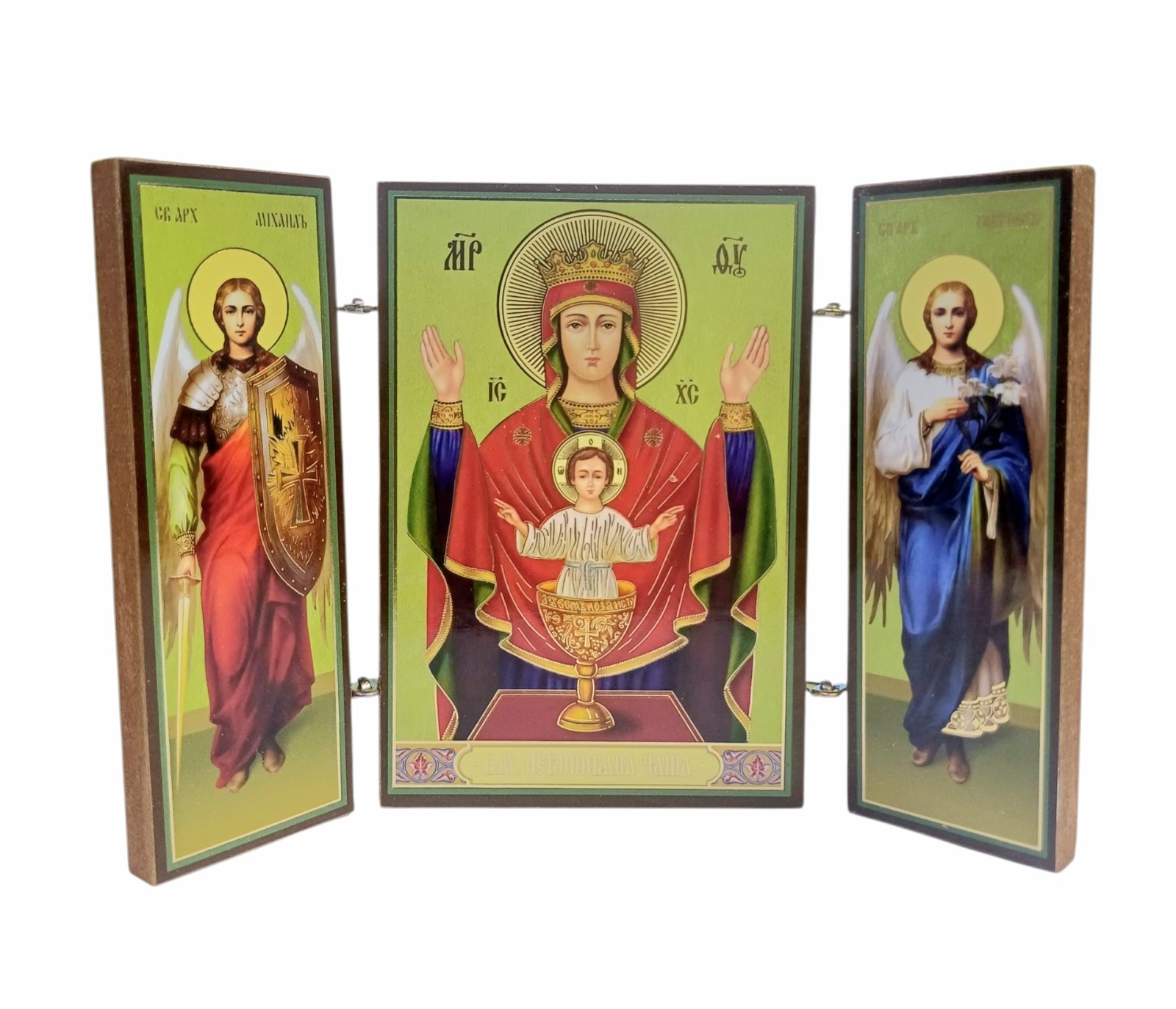 Складень "Неупиваемая чаша" (Арх. Михаил и Гавриил)  ↕8.5см ↔6см  ДСП Литография