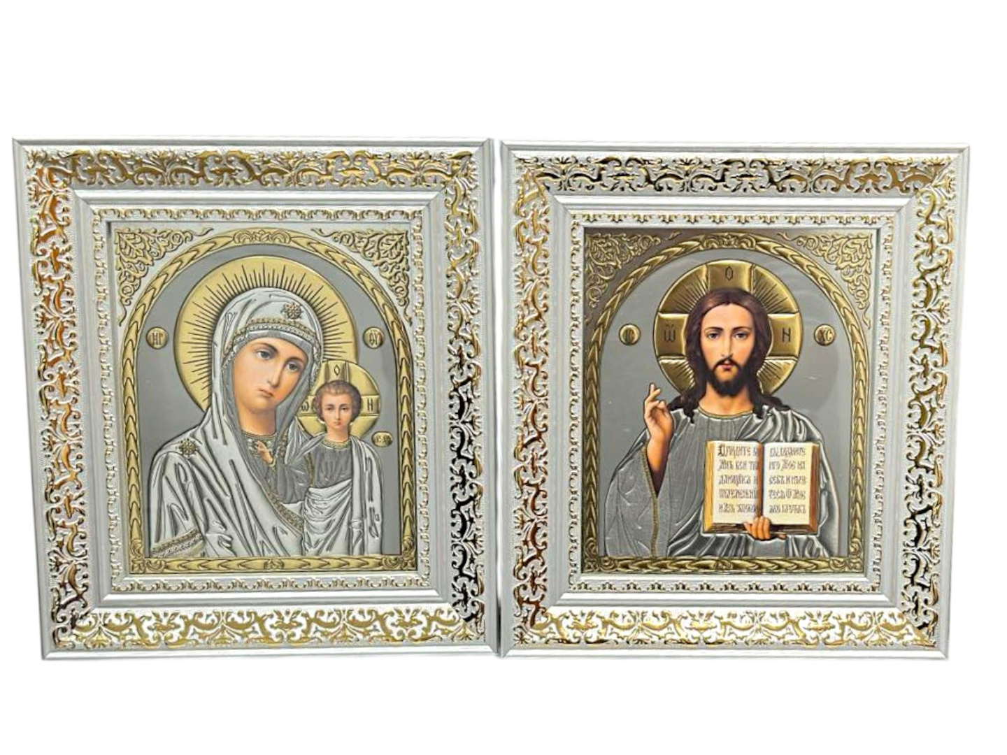 Вседержитель Казанская белая рамка (багет) 22/25 см