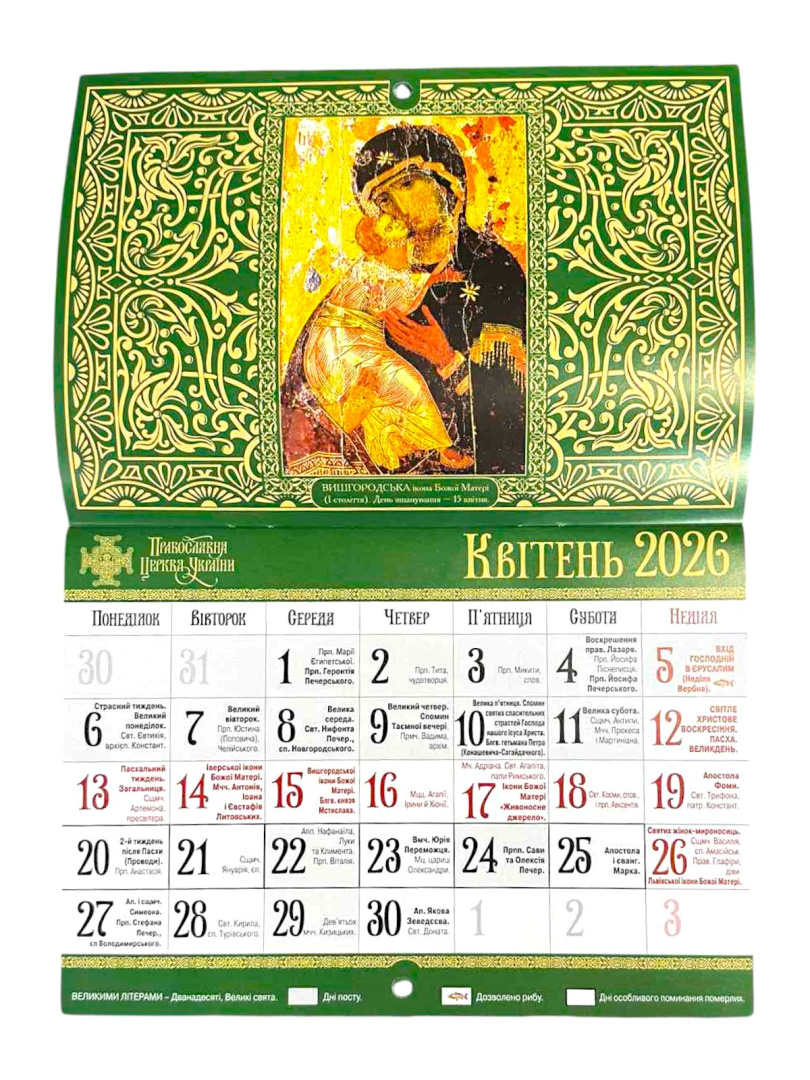 Православный церковный календарь ЧУДОТВОРНЫЕ ИКОНЫ УКРАИНЫ на 2026г
