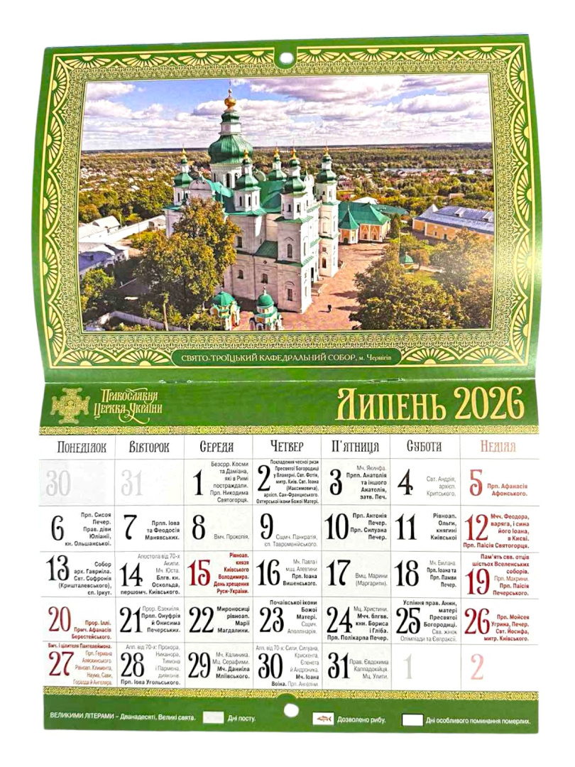 Православный церковный календарь ХРАМЫ УКРАИНЫ на 2026г