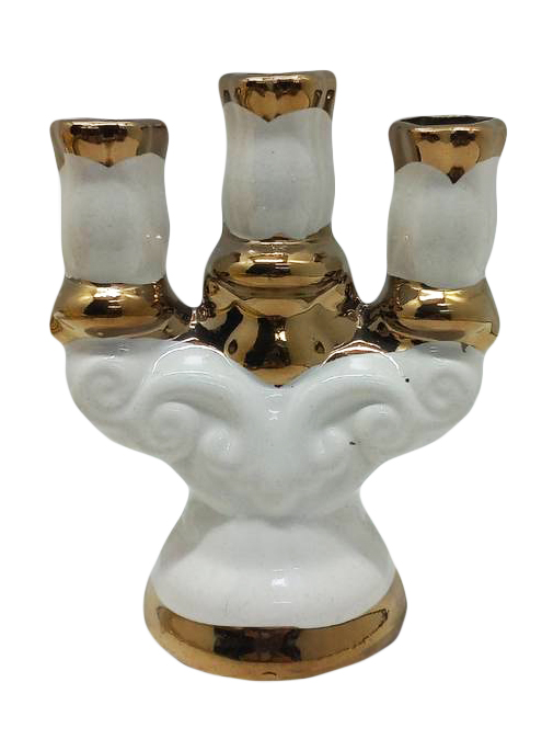 ПОДСВЕЧНИК Комбиннированный Тройник Бело-золотой ↕13 см ⌀ 2 см