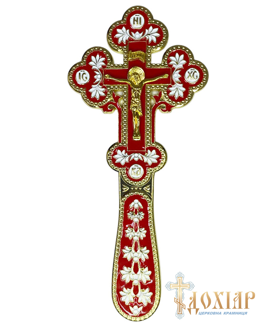Крест требный с эмалью (красный) 7,5/17см