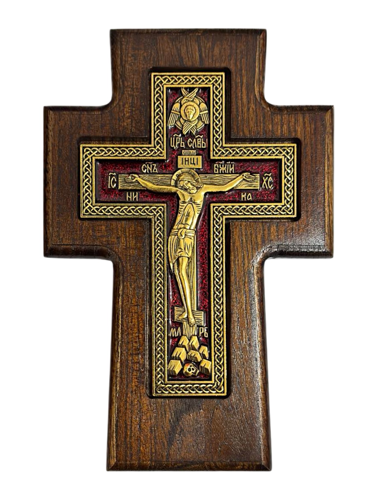 Крест деревянный прямой (красная металлическая вставка) 14/20 см