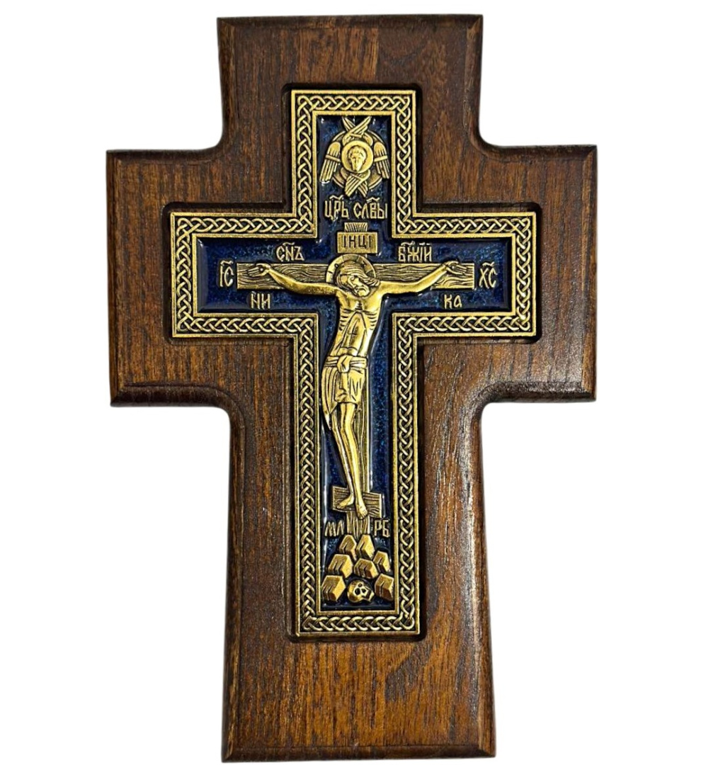 Крест деревянный прямой (синяя металлическая вставка) 14/20 см