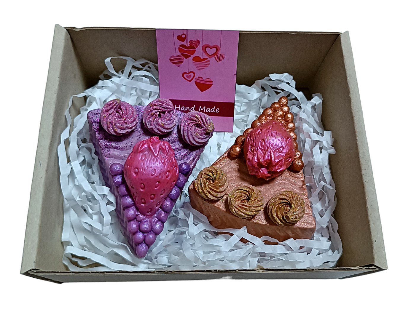 Мыло ручной работы набор "Тортик с клубникой" 2шт