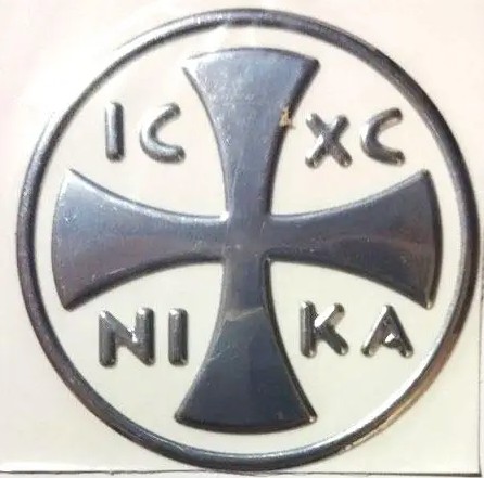 Наклейка круглая автомобильная «Крест NIKA» на самоклеющейся прозрачной пленке. Выпуклая.
