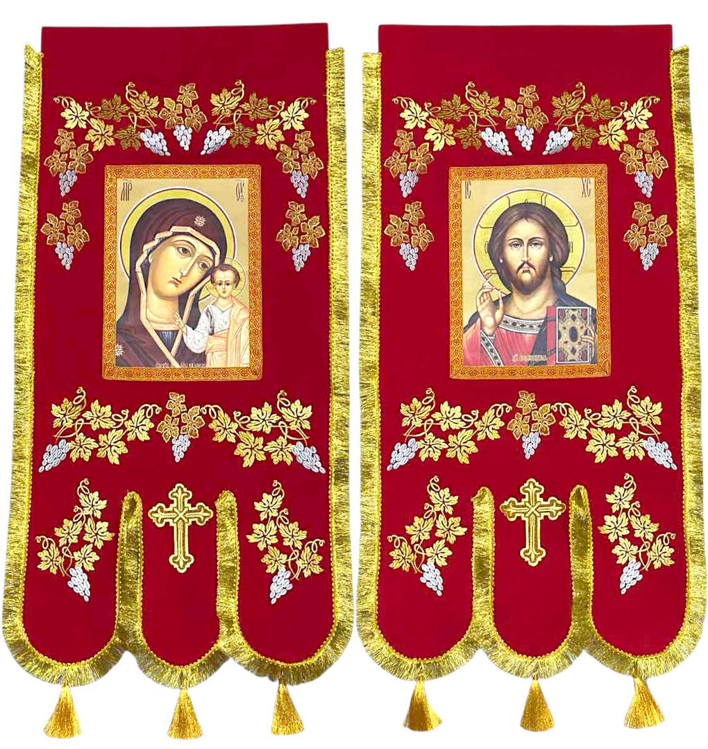 Хоругви тканевые, машинная вышивка (узор виноград)