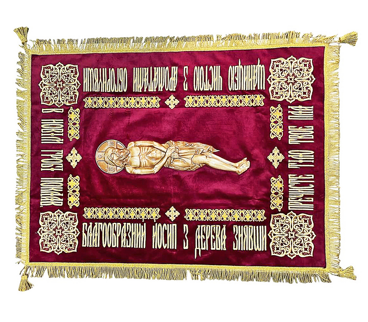 Плащаница Господа 3D (дерево),искусственный бархат, вышивка 65/95 см