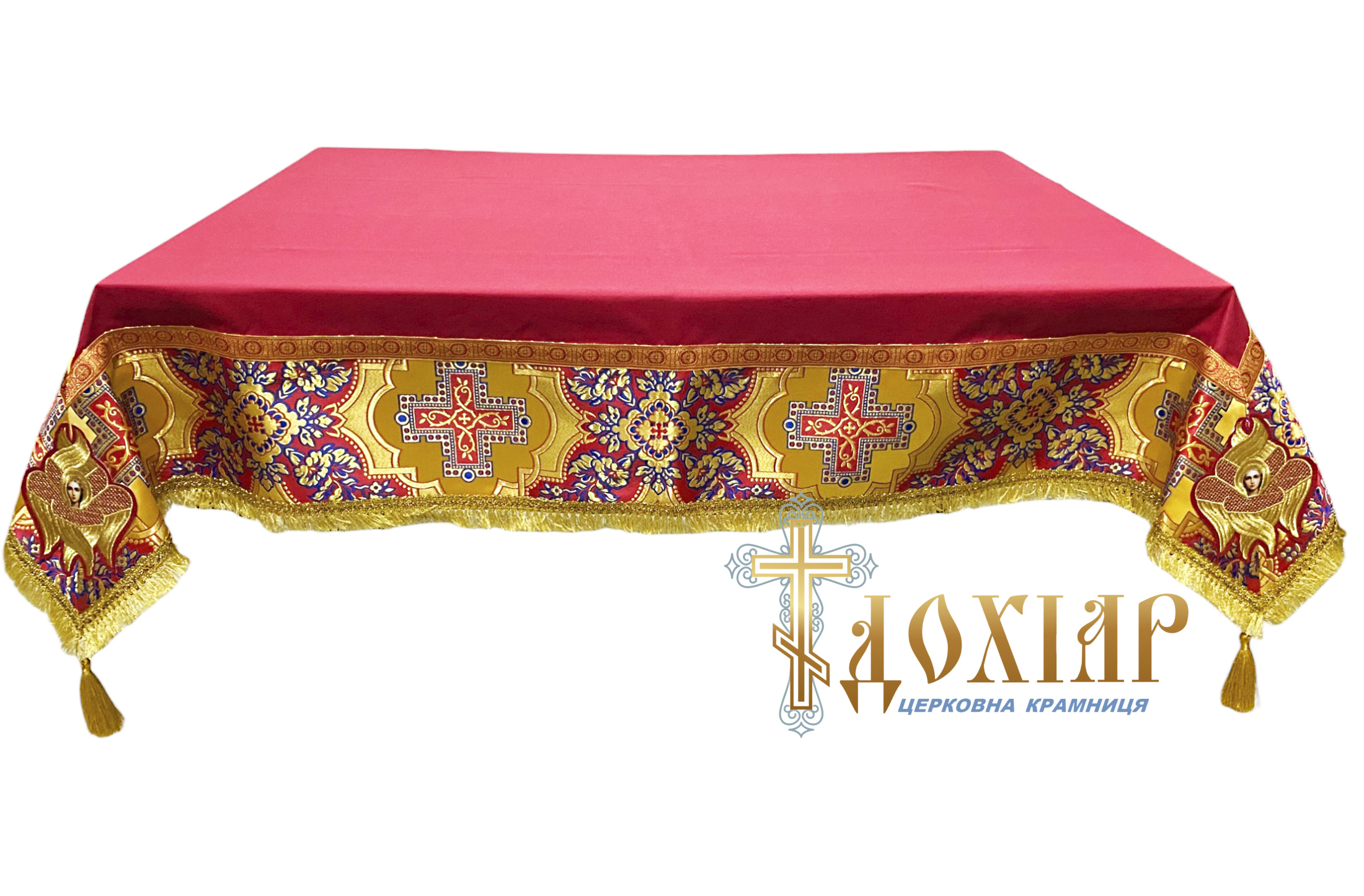 Скатерть комбинированная парча Г+габардин (красное золото) 160/160см