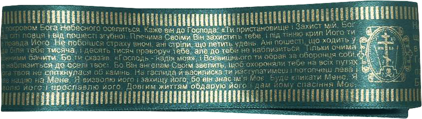 ЛЕНТА с охоронной молитвой УКР язык КОРОТКАЯ 80см Зеленая