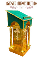 Основа аналоя - влагостойкая фанера, крышка покрыта прочным мебельным бархатом.