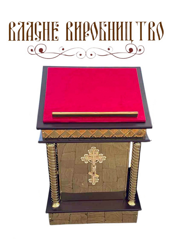 Основа аналоя - влагостойкая фанера, крышка покрыта прочным бархатом.