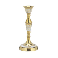 Подсвечник изготовлен вручную, украшен натуральным перламутром. Высокая ножка позволяет удобно держать подсвечник в руке.