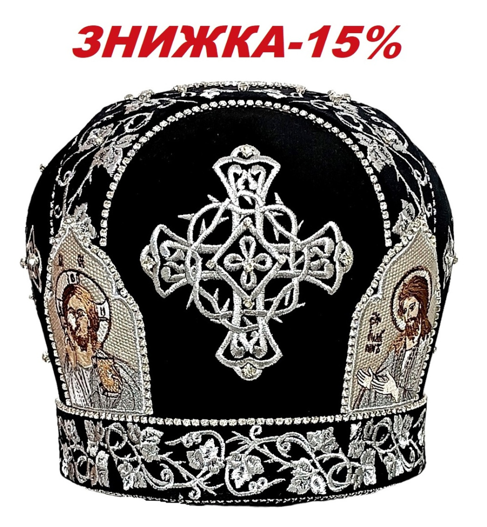 Митра, вышитая на бархате высококачественными нитями (машинная вышивка)