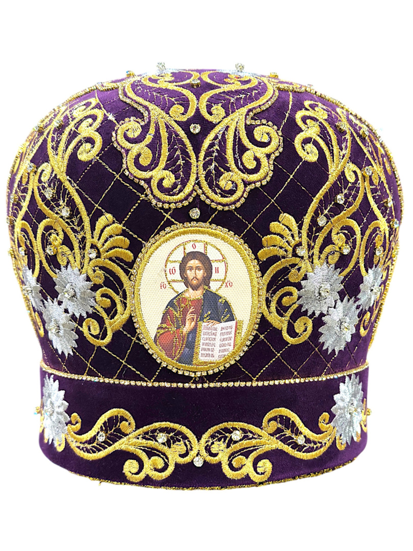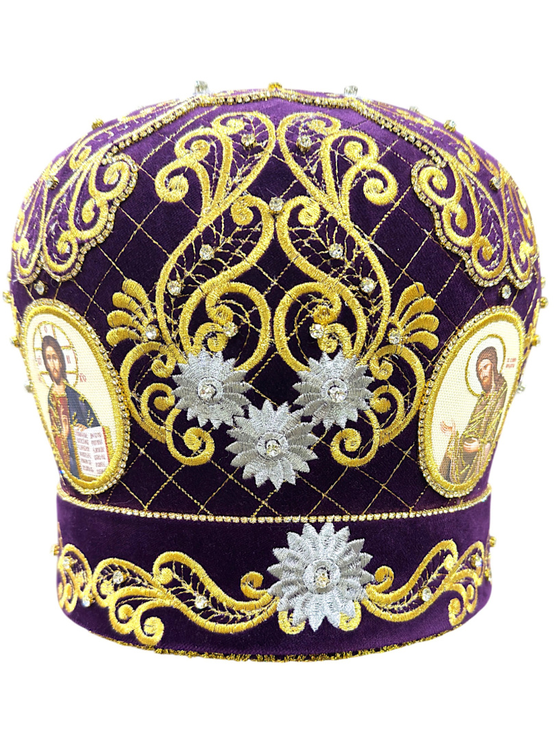 Митра, вышитая на бархате высококачественными нитями (машинная вышивка)