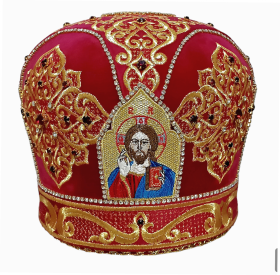 Митра, вышитая на бархате высококачественными нитями (машинная вышивка)